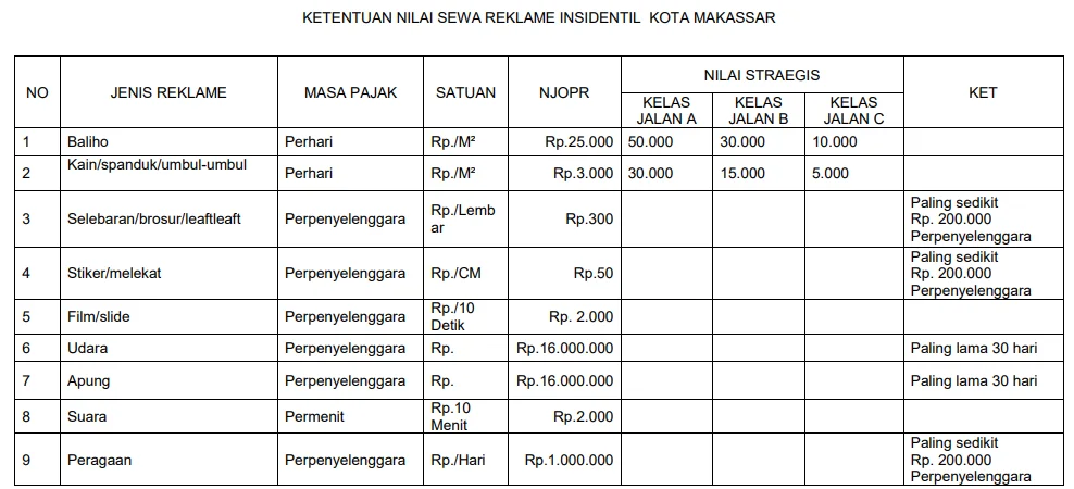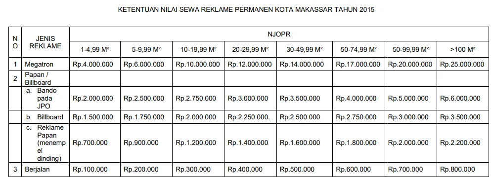 Tarif Pajak Reklame Makassar Terbaru